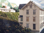 “Nettelandhuset" sett fra nord. Huset står fortsatt på Nesttun. Bygd i plast og etset messing etter nyere oppmåling og fotografier fra