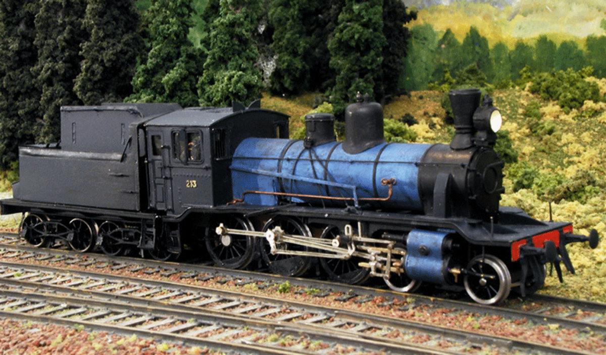 helt, for understellet er tatt fra et tysk lok i N-skala (ellers hadde det nok ikke gått...) Byggedelene er tegnet og etset, og dom, pipe, ...