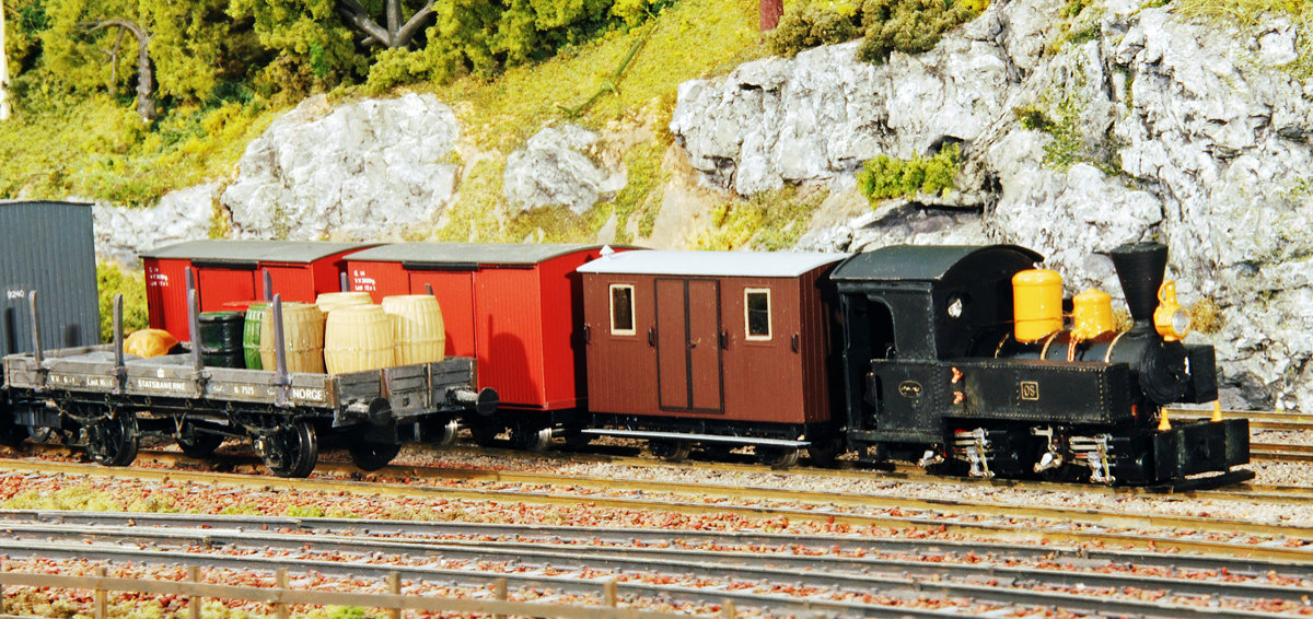 Godsvognene er alle messingbyggesett, mest fra Scandinavian Miniatures.